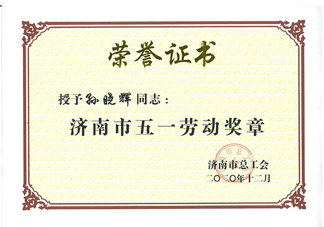 二分公司孙晓辉荣获“济南工匠”、济南市“五一劳动奖章”