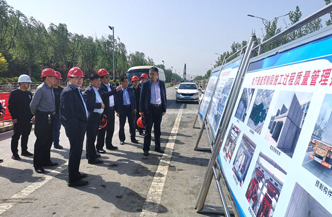 王长军副书记察看了施工现场现浇段与预制段地下通道,,,,,听取工程建设情况汇报后,,,,,他指出,,,,,在下一步施工中要继续保持较高的质量控制和安全文明控制标准,,,,,认真贯彻各项治理扬尘举措,,,,,按照要求规范施工,,,,,争创精品工程。。。。。。。