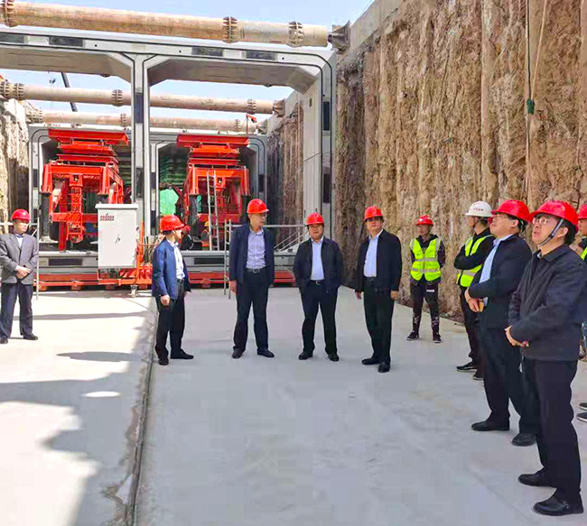 察看地下通道预制段施工现场情况