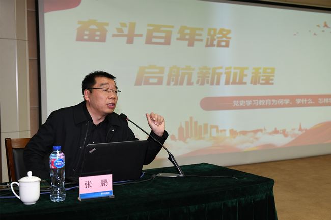 张鹏教授以“奋斗百年路 起航新征程”为主题,,,,,以“党史为何学、学什么、怎么学”为主线,,,,,对党史学习教育的目的意义、重点内容和方式方法作了深入解读,,,,,重点回顾了中国共产党百年奋斗的光辉历程和宝贵经验,,,,,全面生动阐述了共产党人的初心使命。。。。。。。。讲座主题鲜明、内容丰富、阐释精准,,,,,既有思想理论的高度,,,,,又有实践操作的深度,,,,,对集团全体党员干部准确把握和全面推进党史学习教育具有重要的指导意义。。。。。。。。