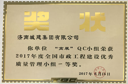 “高展”QC小组荣获2017年度全国市政工程建设优秀质量管理小组一等奖