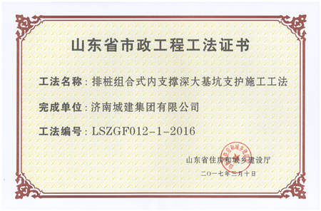排桩组合式内支撑深大基坑支护施工工法LSZGF012-1-2016